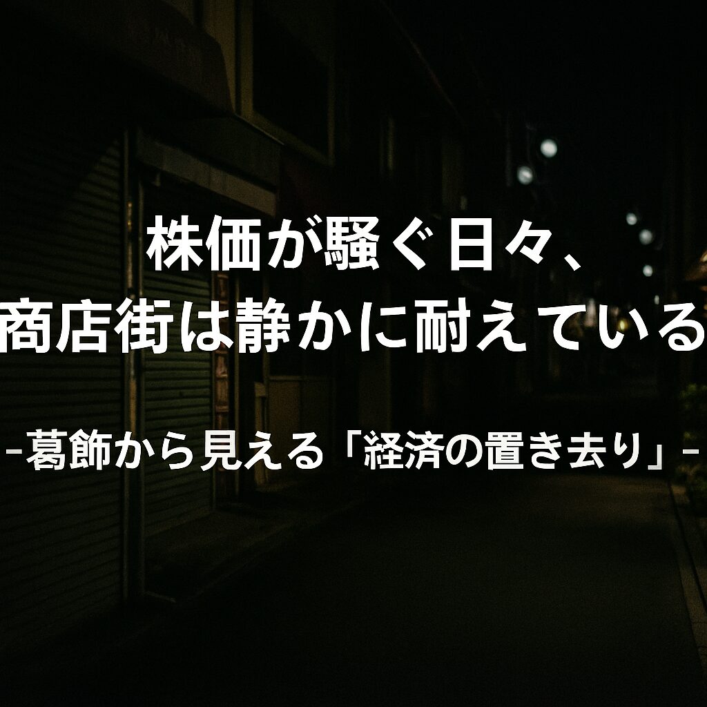 連日、株価高騰のニュースが賑わっています。 「バブル再来か」「企業業績が好調」──そんな言葉が紙面を踊る一方で、葛飾の商店街では、今日も静かにシャッターが閉じられていきます。